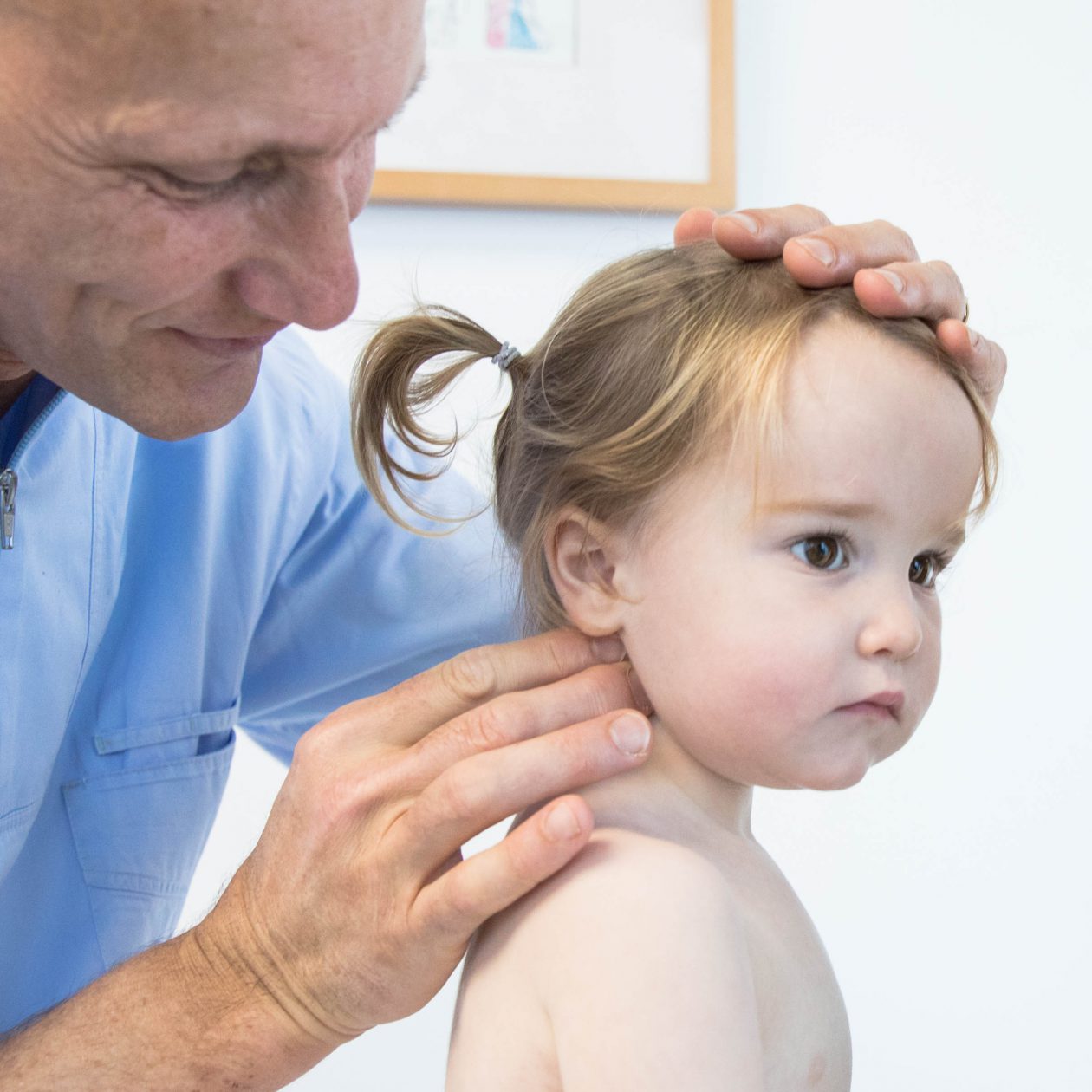 Aan de hand van een vraaggesprek wordt een beeld geschetst van het probleem. Hierna volgt een lichamelijk onderzoek waarbij mobiliteit, motoriek en spierspanning worden getest. Vervolgens worden de wervels en de schedel gecontroleerd. Aan de hand van dit onderzoek wordt bepaald wat problemen zijn en worden de ouders uitgebreid ingelicht over de behandeling.